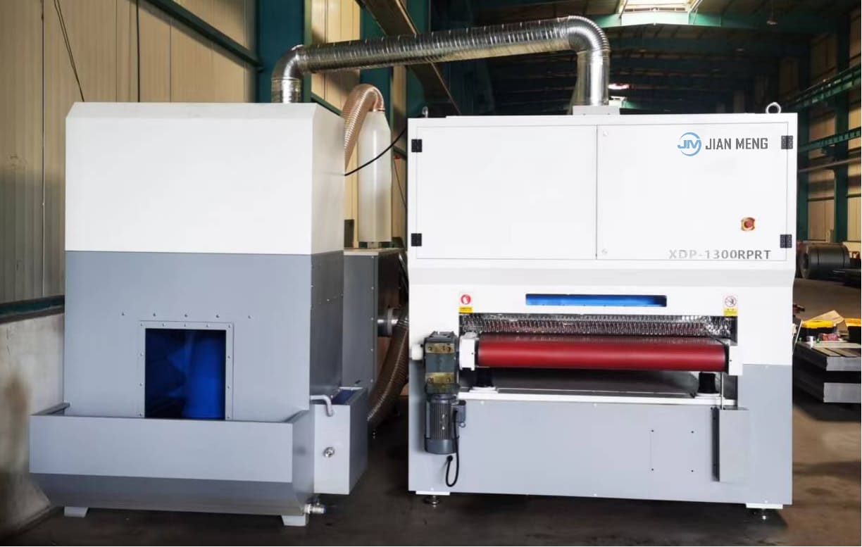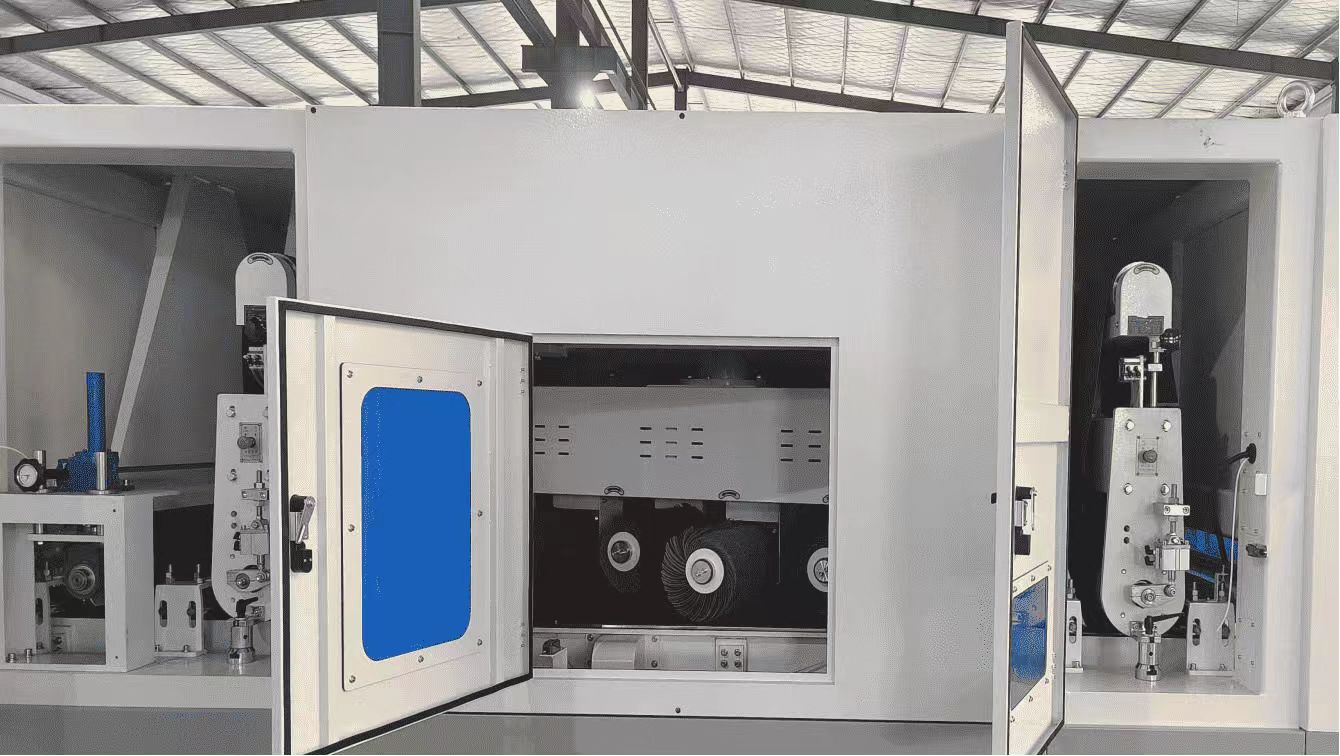 Внутренняя структура 1000RPRT состоит из одного набора абразивных лент + восьми роликовых щеток + одного набора абразивных лент + одного полировального ролика, образующих четырехступенчатую систему обработки. Первая абразивная лента используется для первоначального удаления заусенцев с поверхности заготовки; второй этап с помощью восьми роликовых щеток осуществляет щеточную обработку, обеспечивая тщательное удаление заусенцев без повреждения поверхности; второй комплект абразивных лент обеспечивает дальнейшее тонкое шлифование для улучшения плоскостности поверхности; и, наконец, полировальный валик осуществляет прецизионную полировку, делая поверхность гладкой, однородной и визуально изысканной. Благодаря хорошо продуманной конструкции станок для отделки металла обеспечивает эффективную, стабильную и непрерывную обработку поверхности.